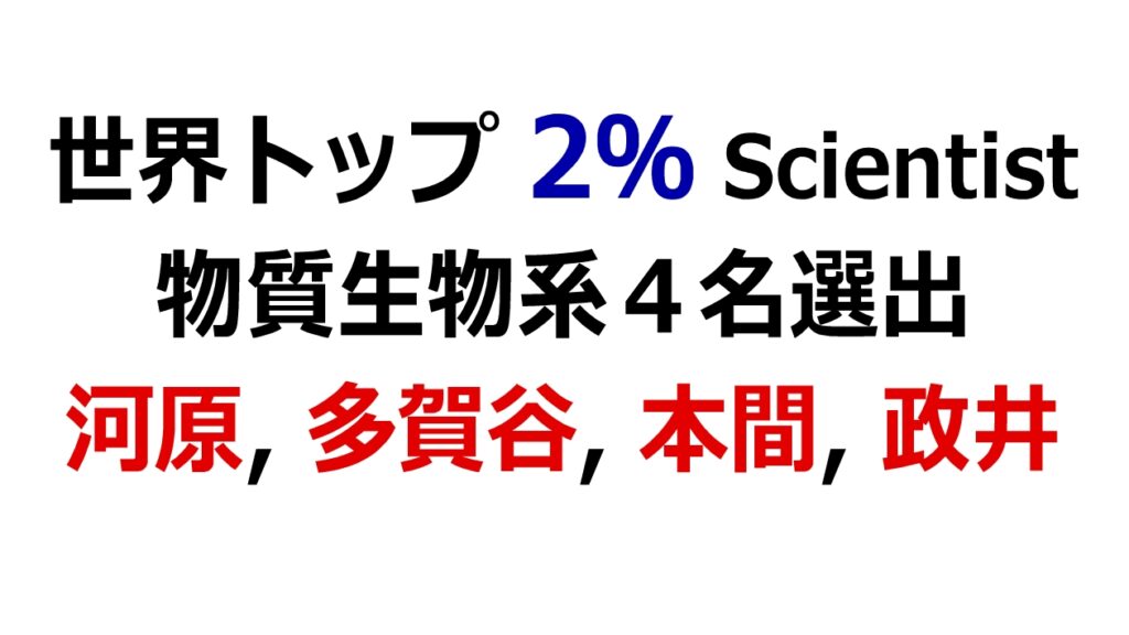 世界トップ 2% Scientist 物質生物系4名選出(河原教授、多賀谷教授、本間教授、政井教授)